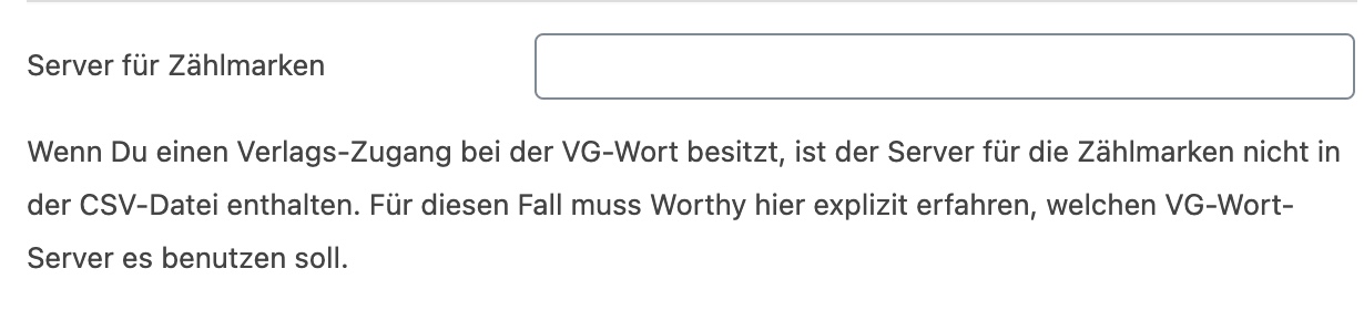 Wenn Du nicht als Urheber bzw. Autor bei der VG WORT gemeldet bist, sondern ein Verlagskonto besitzt, funktioniert die Bestellung genauso, wie wir oben beschrieben haben. Allerdings findet Worthy Premium nicht selbstständig heraus, über welchen Server die Zählmarken gezählt werden sollen. Deshalb musst Du einmalig den “Server für die Zählmarken” unter dem Reiter “Einstellungen” eintragen.