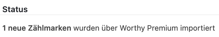 Nach dem Import zeigt Worthy Dir an, wie viele Zählmarken neu importiert wurden, wie viele schon da waren oder jetzt aktualisiert wurden. Dadurch kannst Du auch noch einmal überprüfen, ob wirklich alles richtig abgelaufen ist.