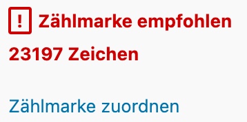 Beachte: Eine Zählmarke solltest Du nur dann zuordnen, wenn Du den Text alleine verfasst hast und er nicht zu viele Zitate enthält. Die geforderte Textlänge bezieht sich nämlich auf den bereinigten Text; Zitate oder Teile weiterer Autoren müssen zu den 1.800 Zeichen hinzugerechnet werden.